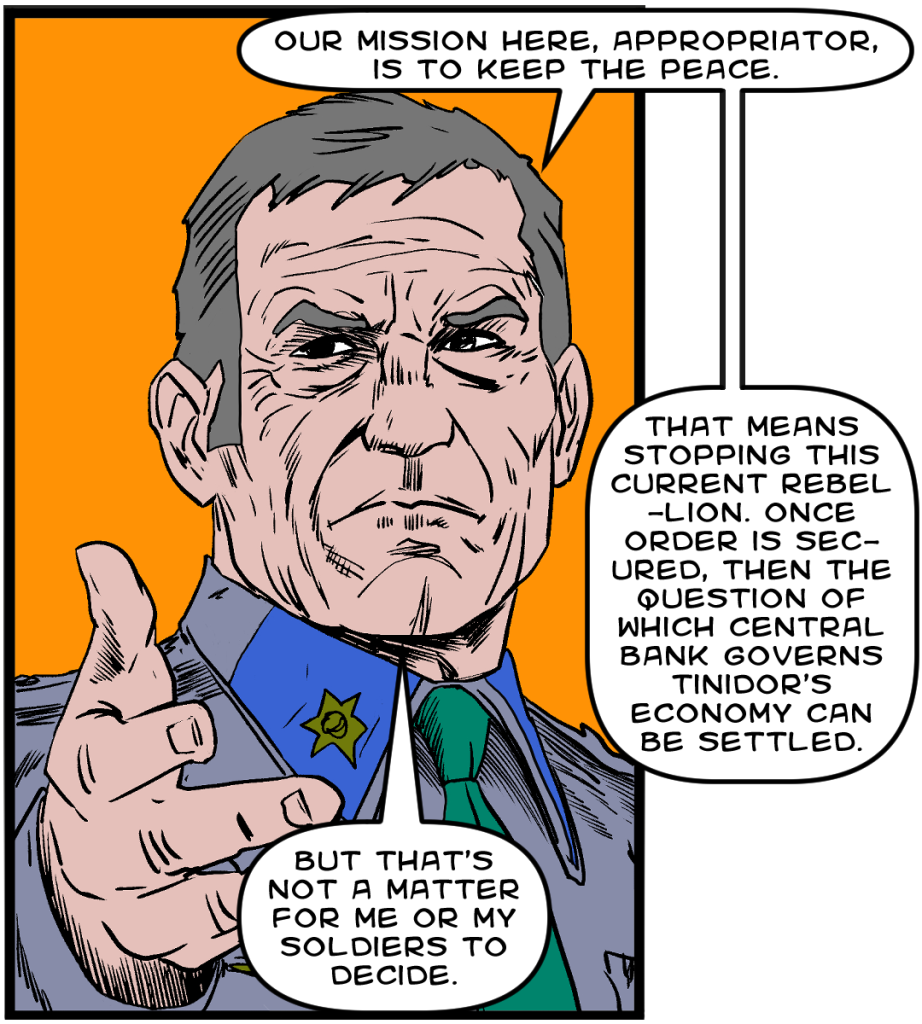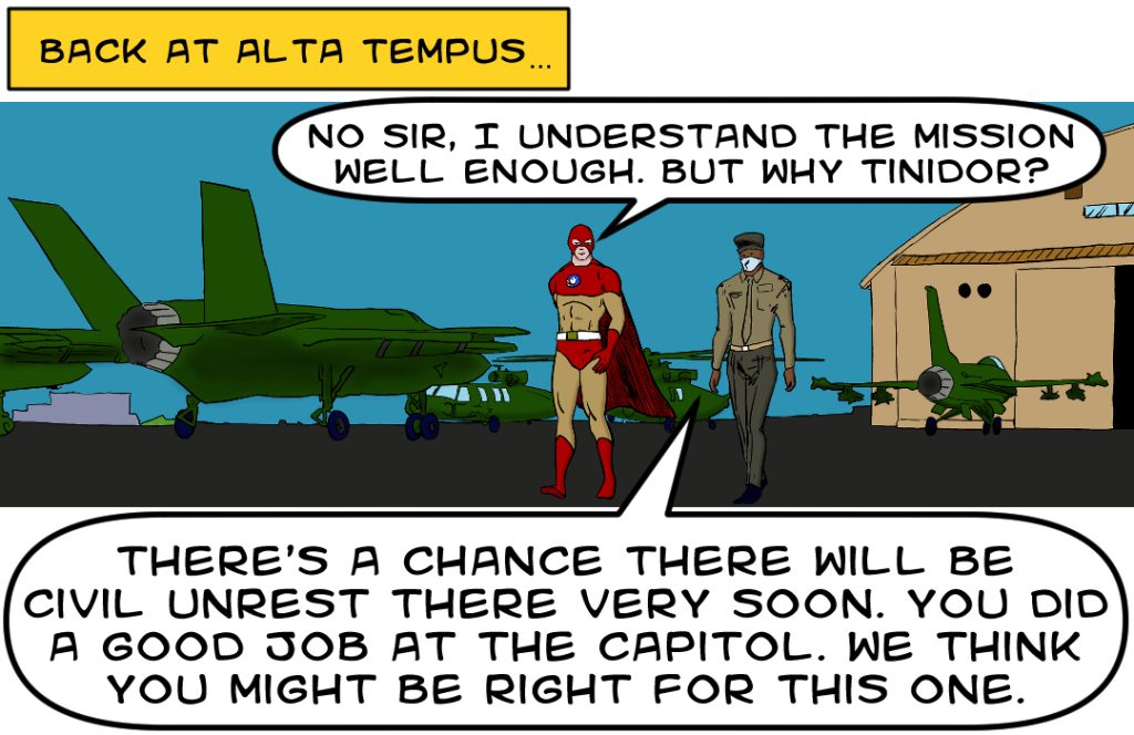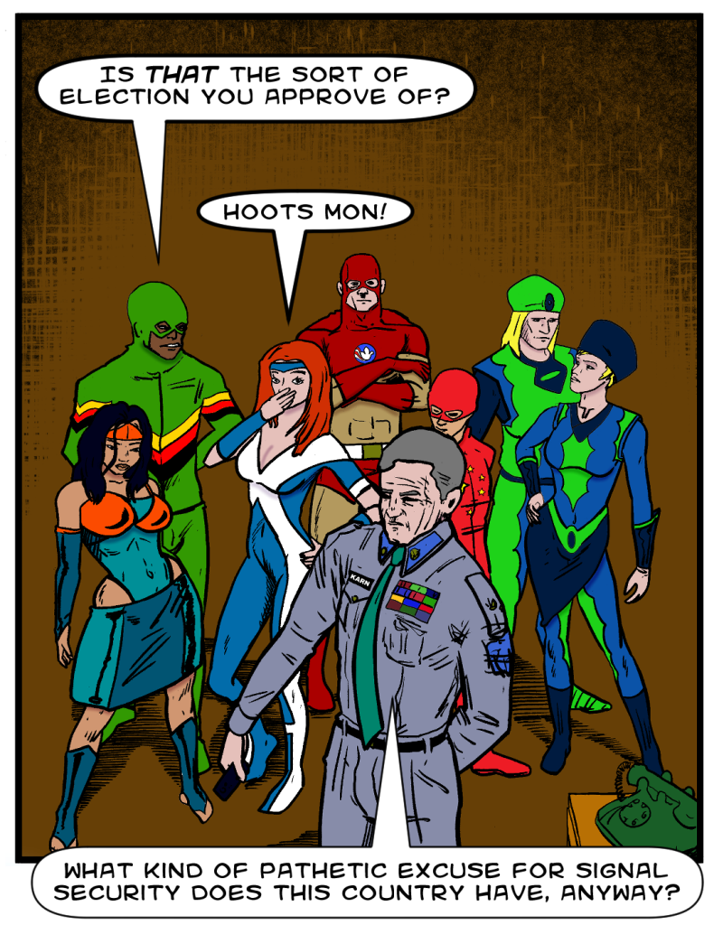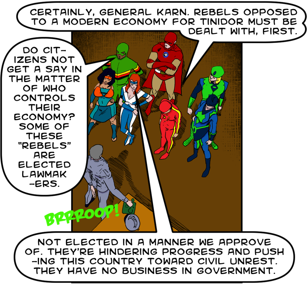Last time, Phantom Force took hidden camera video of Mind Bender convincing bureaucrats to steal Tinidor’s election.